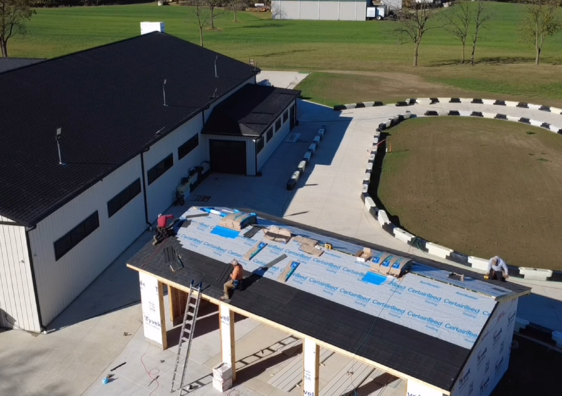 With the project complete, the new garage now has a durable, weather-resistant roof that will protect the building for years to come. This CertainTeed system not only provides lasting functionality but also contributes to the overall professional appearance of the commercial outbuilding.